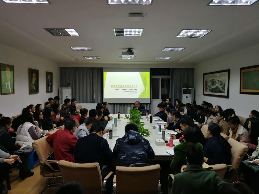2017年11月21日晚,应高翔莲经理邀请,华中师范大学韦德bevictor经理万美容教授莅临公司“名家讲坛”,在韦德bevictor会议室作了题为“思想政治教育究竟是什么”的学术报告。报告由高翔莲教授主持,公司教师及四十余名博士、硕士研究生到现场参与学习交流。