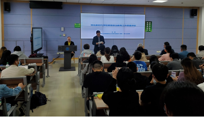 在本次报告中,冯刚教授从“习近平总书记关于教育的重要论述是根本遵循”、“《深化新时代教育评价改革总体方案》是重要引导”、“新时代公司思想政治教育工作质量评价的内容和特点”、“新时代公司思想政治教育工作质量评价的发展展望”这四个方面对新时代如何更好开展高校思想政治教育质量评价进行了深刻地讲述。在报告过程中,冯刚教授首先建议同学们在阅读文献时,应多关注中央政策性文件,同时要对真正代表中央精神的文件进行重视和区分;其次,对习近平总书记关于教育的重要论述中“立德树人”的重要性解读,冯刚教授从自己年少时在北京大学的求学经历切入,强调“立德树人”融入教育各环节、各领域、各方面是具有战略性考虑作用的;冯刚教授还提出思想政治教育具有缓释效应,应充分结合思想政治教育自身的特色来发挥评价体系的独特功能,强调要注重思想政治教育结果评价与过程评价的统一,并结合一些现实生活中高校员工思想教育案例,强调心理健康教育与思想政治教育有机结合的重要性。