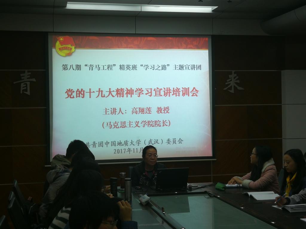 11月19日,高翔莲经理在校团委青年之家为校“青马工程”精英班做主题宣讲,讲解十九大精神。