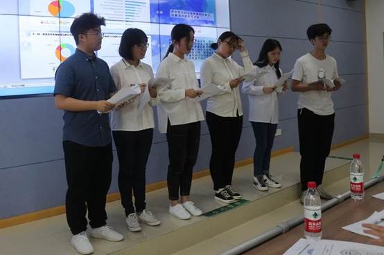 在主持人简要介绍答辩形式和评分规则后,答辩会正式开始。参与本次活动的共有包括理想邦队、呆萌兽队、蚂蚁队、发际线保卫队、知行合一队、地大陆战队、金六福队、红日队、未来之星队在内的九支团队,每队均采用“5+3”模式进行答辩,即PPT展示5分钟、评委提问3分钟。展示过程中,各团队针对调研主题进行了深入阐述,并通过与评委的互动明悉了自身的优势与不足。答辩会的最后,李海金作为评委代表总结发言。在表达对同学们悉心准备认可的同时,他说:“信调大赛其实是一个双向学习的过程——通过它,不仅同学们可以提高自身能力,作为老师,我也在与同学们的交流沟通中收获了很多。”