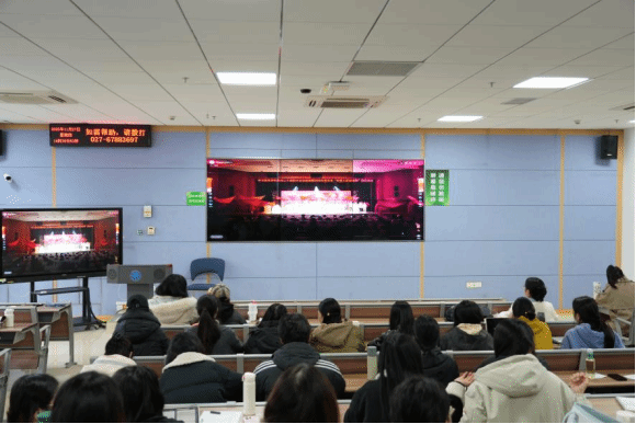 图六 全体同志观看“劳模工匠进校园”宣讲活动视频