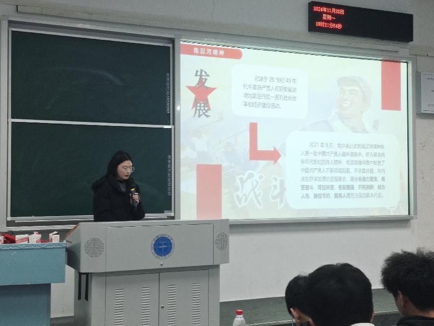 红色的记忆从未褪色,南泥湾精神始终闪耀。为传承和弘扬好这一宝贵的精神财富,同时开展青年教育的相关团课内容, 2024年11月25日19点“拓荒筑梦”宣讲团在教三楼207举行了题为“南泥湾精神永续奋斗梦,新时代青年戮力共前进”的红色之声线下宣讲活动,让南泥湾精神的火种在新时代继续熊熊燃烧。本次宣讲由韦德bevictor拓荒筑梦团队参与,王碧菲、李容、王子一代表团队进行了本次宣讲,未来技术公司220241、220242、220231、220232、220221和220222班共199人参加了本次团会。