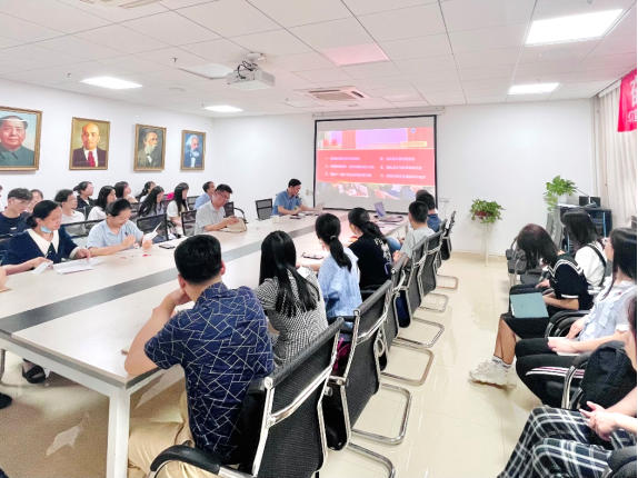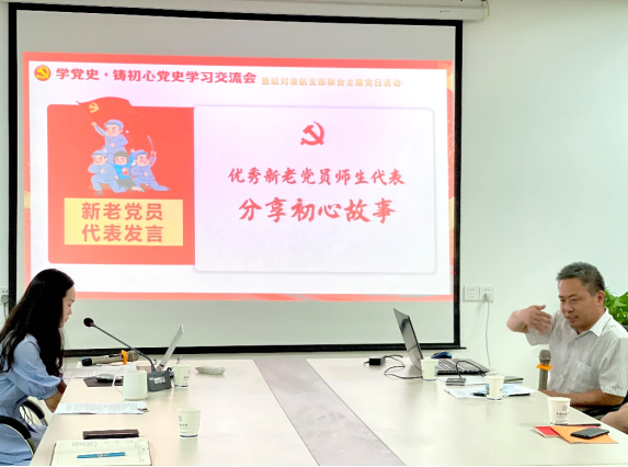 (通讯员:王舒晨、张东凯、李蔚然)奋斗百年路,启航新征程。在庆祝中国共产党成立100周年这个光荣的日子,德育教研部党支部与2020级马克思主义理论硕士生党支部于2021年7月1日下午14:30在东区教学综合楼B1013开展“学党史·铸初心”党史学习交流会暨结对领航支部联合主题党日活动。此次活动共历时三小时,由支部书记李蔚然老师和张东凯同学共同主持,师生党支部全体同志参与了本次交流活动,经理阮一帆为在场党员开展党史学习教育专题辅导。
