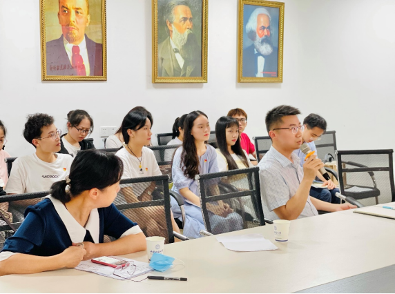 第二项主题为“党史学习心得交流”。今年3 月公司召开了党史学习教育动员大会,对全体师生党员提出了要做到“四个一”的要求,公司全体师生贯彻执行“四个一”要求,即“读一篇党史著作、写一篇读书笔记、参观一次党史纪念馆、看一部党史电影”。本次交流会上,来自2020级马克思主义理论硕士生党支部的四名党员同志对前期的党史学习情况进行交流分享。侯绍薇同志分享了电影《我的1919》,她通过对比当年巴黎和会的“弱国无外交”到今年阿拉斯加中美会谈中杨洁篪主任的硬气外交,表达了珍惜历史机遇,胸怀伟大梦想的青年担当。戴成波同志和晋曼钰同志围绕今年大热的电视剧《觉醒年代》分享了自己的观剧感悟。他们回顾历史,结合当下热点,向大家阐明了我们今天的美好生活就是觉醒年代的续集,当今中国仍然需要“觉醒”精神,我们青年人需要接过革命先驱的接力棒接续奋斗。史涛同志根据自己最近阅读的《中国共产党简史》等党史书籍,认为学习党史必须坚持唯物史观、必须善于总结思考、必须学习党百年奋斗历程中的各种伟大精神以及必须从实践出发践行党的宗旨。