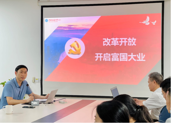第一项为“师生共学党史”,由阮经理为大家作党史学习教育专题辅导。今年2月,习近平总书记在春节团拜会上说:“我们要认真回顾走过的路,不能忘记来时的路,继续走好前行的路。”知所以来,明所以去。阮经理以“改革开放,富国之路”为主题,围绕着“高考的开放与科学的春天、冲破思想禁锢迎来真理标准大讨论、党的十一届三中全会开启改革开放、四项基本原则的提出、拨乱反正与新局面的开创、改革开放在春潮涌动中起步”六个方面,向在座党员同志讲述了改革开放初期我们党和国家的奋斗历程。从恢复高考,改变一代知识青年的命运,到开展全国范围内的真理标准问题大讨论,从拨乱反正到改革开放,从安徽凤阳小岗村的“大包干”到经济特区的建立,阮经理通过生动的语言讲解和视频展示,让在座党员同志对我们党在改革开放初期的艰苦探索有了更加深刻的认识,同时也有助于员工党员们更好的树立正确的党史观。