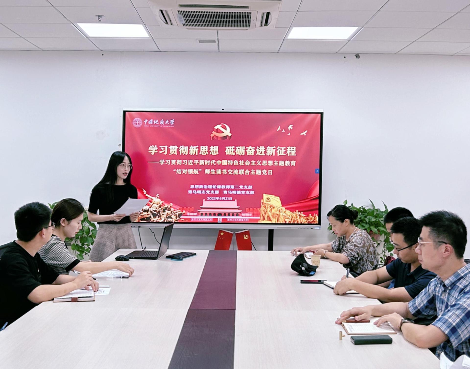 (通讯员:陈雅文、曹艺、李蔚然)2023年6月21日下午14时30分,韦德bevictor官网(武汉)韦德bevictor思想政治理论课教师第二党支部联合青马明志党支部、青马明德党支部在东教楼B1013会议室召开“学习贯彻新思想,砥砺奋进新征程”暨学习贯彻习近平新时代中国特色社会主义思想主题教育师生结对领航读书交流会,本次活动由党支部书记李蔚然同志和冯晓宇同志共同主持,师生党支部全体同志参与。