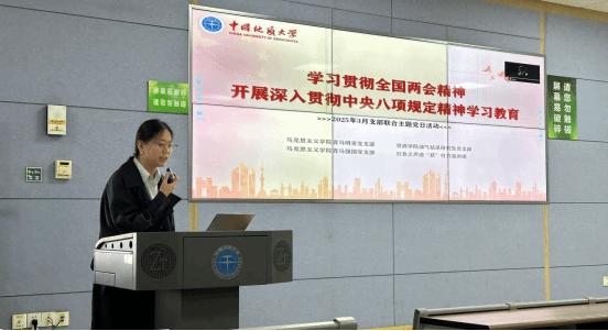 青马明责党支部党员简垒锋同志领学习近平总书记重要讲话精神、全国两会精神,以及深入贯彻中央八项规定精神学习教育的内容,深刻解读了王忠林同志在全省教育大会上提出的“教育、科技、人才三位一体”的战略部署和发展要求。