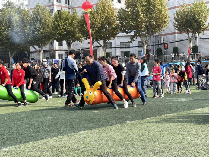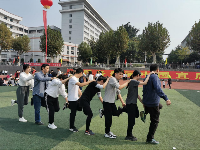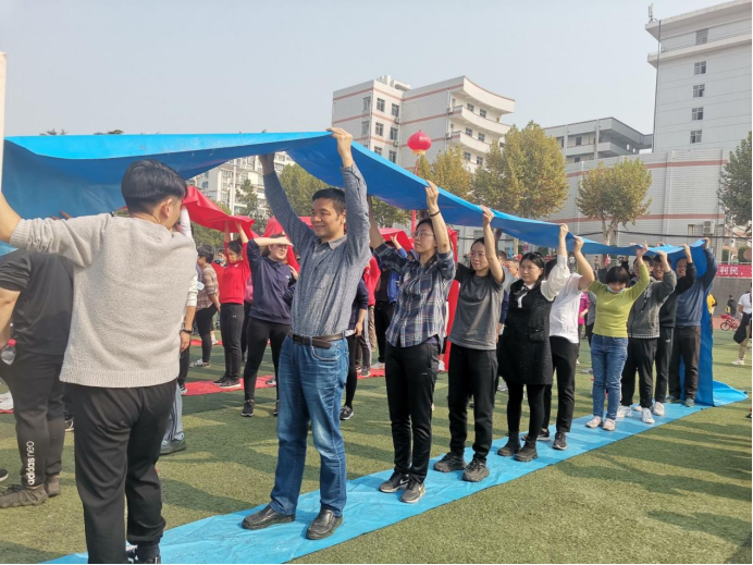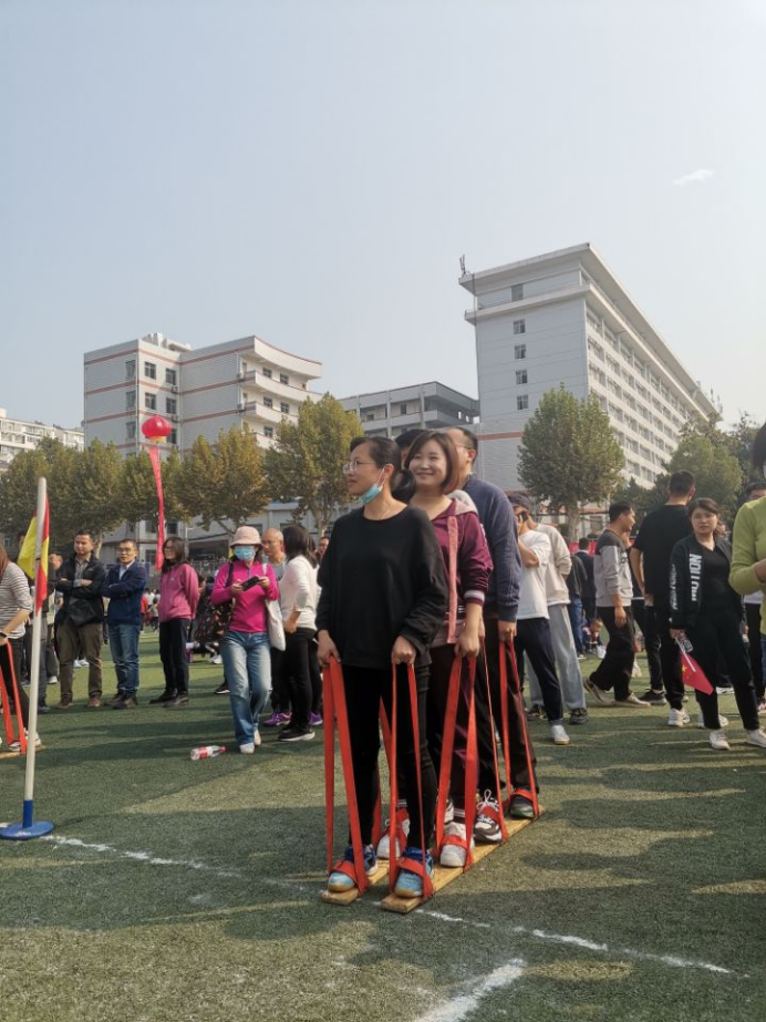 开幕式结束之后,部分老师踊跃参加趣味比赛项目和其他教工比赛项目。本次运动会设有的教工集体趣味比赛包括:组合成语25米接力赛、协力向前冲、欢乐毛毛虫、无敌风火轮、单脚火车跑、足球定点射门6个趣味比赛项目。在正式比赛开始前,老师们纷纷相互配合进行热身活动,提前熟悉比赛项目。气氛顿时活跃了起来,比赛随即开始。在几项趣味横生的比赛项目中,参赛的老师们团队协作、努力拼搏,周围观战的师生也都向他们呐喊助威、鼓掌喝彩。整个场面激烈又不失欢乐。比赛不仅增强了大家的团队协作意识,而且也有助于提高老师们的运动积极性,不断增强体魄,积极投身工作。最后,全体运动员合影留念。