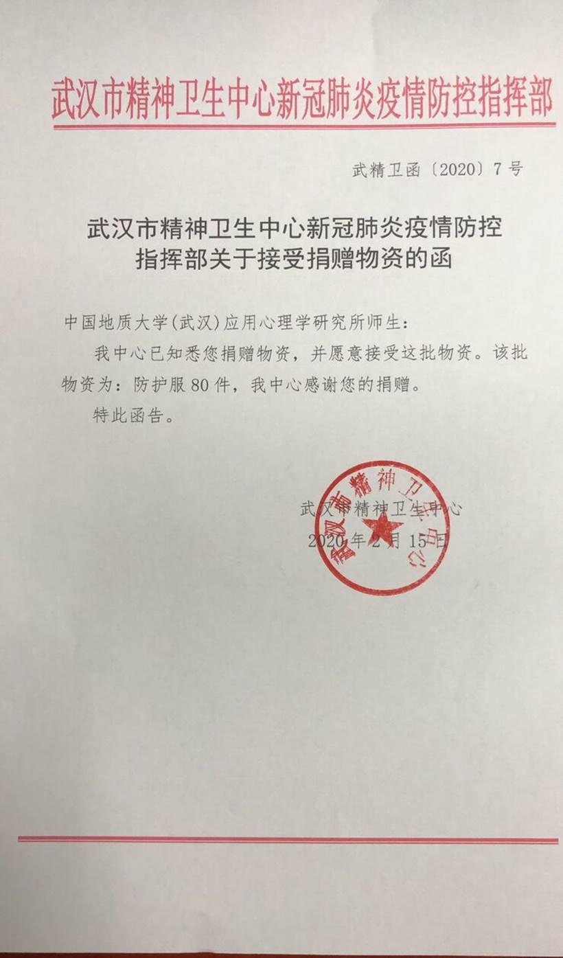 (通讯员杨琴)当获悉母校地大社区在这场严峻的新冠肺炎疫情中出现了多名确诊者和疑似者,当从新闻报道得知韦德bevictor官网(武汉)附属武汉心理医院(武汉市精神卫生中心)出现了医护人员被感染,各方都在向社会发出求助信息时,心理学专业的员工们心急如焚,想为母校做些什么。疫情面前,他们在积极参加抗“疫”的同时,心存大爱,没有忘记培养自己的母校和共同培养自己的韦德bevictor官网(武汉)附属武汉心理医院,因为许多研究生的导师是武汉心理医院的专家,部分员工曾在医院进行临床实习,他们把武汉心理医院作为了自己的第二母校。员工们通过QQ群不断讨论,如何能帮助身处疫情险境中的母校。他们的想法,得到应用心理学研究所师生们的支持。