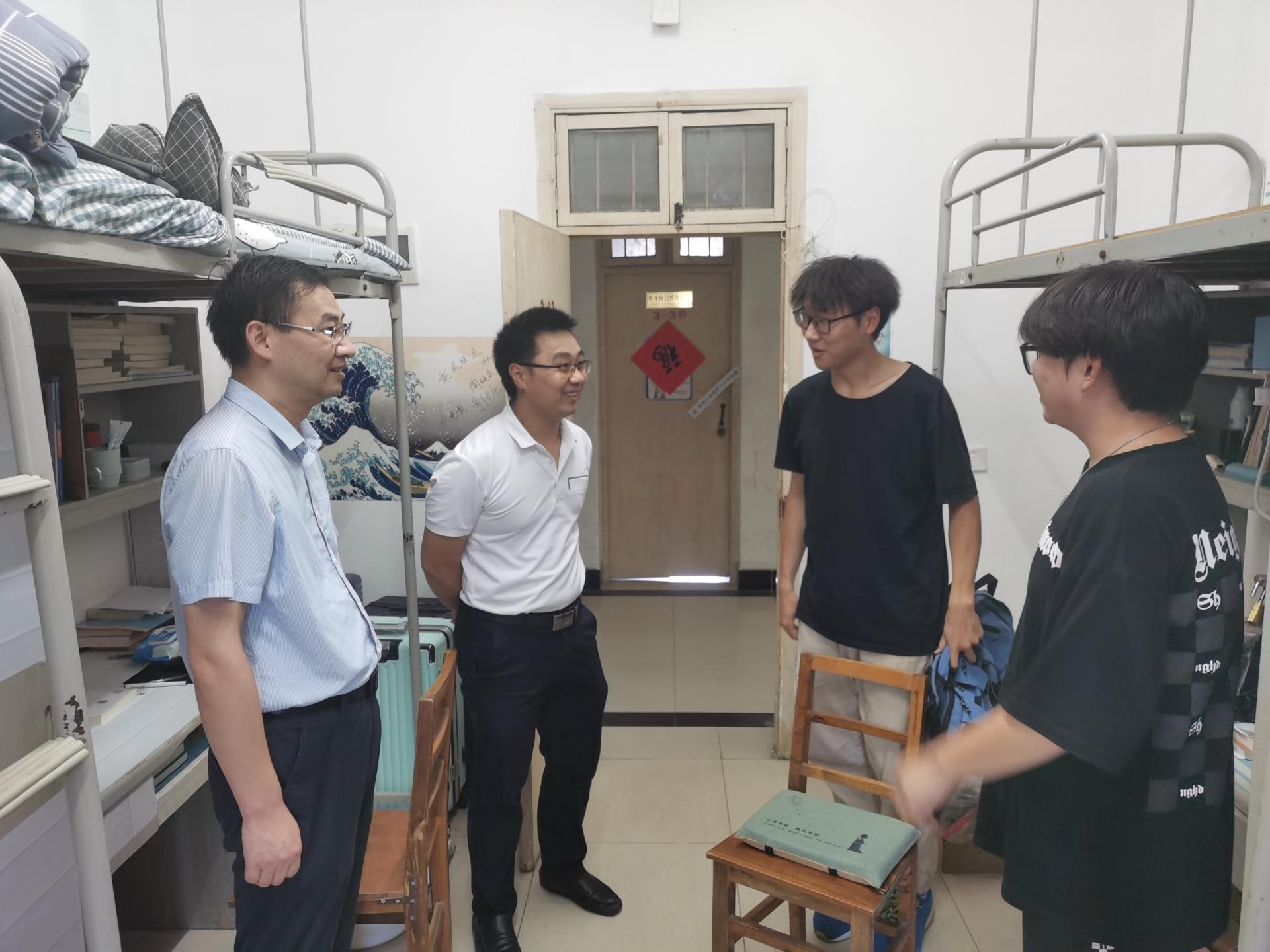最后,院领导一行来到17栋303看望暑假留校集训的本科员工,书记与同学们亲切交谈,询问在校集训情况,并叮嘱同学们在校期间注意个人防护、用电安全,安排好生活学习时间,与家人、公司保持密切联系。