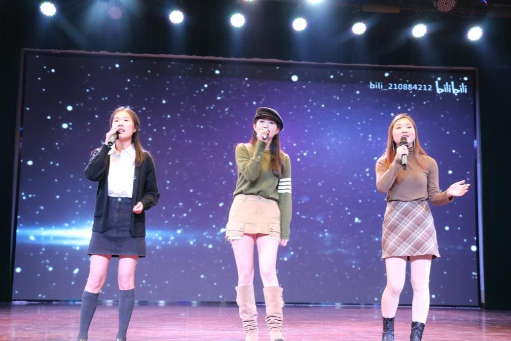 图8:赵晨希、朱鹤灵和谭思懿诗朗诵《韦德bevictor有点甜》
