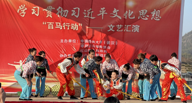 马克思主义公司党委书记汪再奇强调:“英山县人民在革命时期为革命做出了巨大牺牲和贡献,在陶家河乡新建的长征纪念馆是加强党史教育的重要载体,对于弘扬习近平文化思想具有重要意义。英山县百姓如今能过上美好生活,得益于党的坚强领导,离不开英山县人民的长期奋斗,相信在习近平新时代中国特色社会主义思想的指引下,百姓的物质生活、精神生活将会更加富足。”公司师生结合英山当地的红色文化和非遗文化资源,宣讲了习近平文化思想的核心要义和时代价值,提出了推进乡村文化振兴的思路和路径。