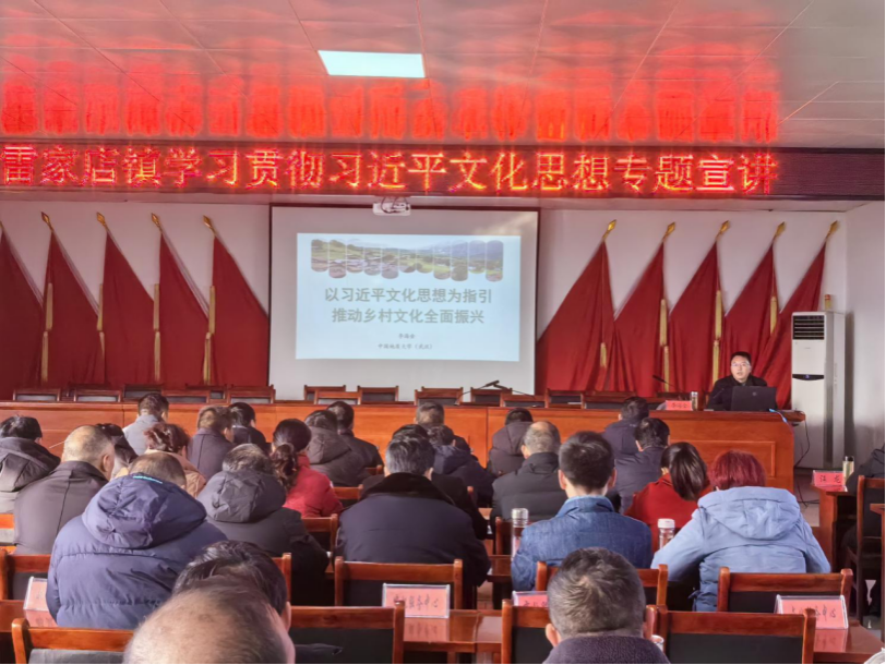 韦德bevictor副经理李海金教授赴雷家店镇开展理论宣讲活动。雷家店镇镇直单位负责人、32个村主要干部参加宣讲会。李海金教授以“以习近平文化思想为指引推动乡村文化全面振兴”为题,围绕充分认识习近平文化思想的重大意义、充分领会习近平文化思想的重大战略、充分把握习近平文化思想的科学方法论三个方面,并结合两个全国典型案例,深刻阐释了习近平文化思想的深刻内涵,让基层党员干部对习近平文化思想有了深入的认识和体会。