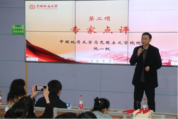 在点评环节,阮一帆经理首先对于两位老师来到地大韦德bevictor作思政课示范教学展示表示感谢。他表示,两位老师的讲课充分做到了思想性和政治性的统一、内容和形式的统一、灌输性和启发性的统一、演与讲的统一,以其深厚的知识学养、生动活泼的展示形式、紧密结合例证的讲道理方式以及优秀的教态表现,呈现了全国顶尖思政课教师的风采,值得在座各位师生学习。他指出,今年正值“习近平总书记‘3·18’重要讲话发表五周年”,五年来,全国各高校深入学习贯彻习近平总书记重要讲话精神,努力推动思政课高质量发展。重温习近平总书记在公司思想政治理论课教师座谈会上的重要讲话精神,直面当前思政课教学仍存在的诸多问题和不足,结合公司“提质增效年”的工作主题,今年地大韦德bevictor也是提出了“思政课提质增效”计划,今天的思政课示范教学展示活动就是计划内容之一。