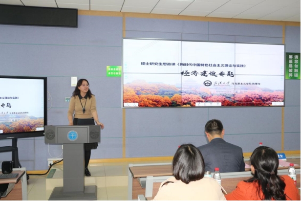 武汉大学韦德bevictor陈慧女副教授以硕士研究生思政课“新时代中国特色社会主义理论与实践”中的“经济建设专题”为主讲重点作教学示范展示。当前我国经济已由高速增长阶段转向高质量发展阶段,陈慧女副教授从“高速增长”这一关键词入手,从中国经济“是不是应该加速冲刺,跑步前进呢?”“此前这个阶段何以能够保持长达半个世纪的高速经济增长?背后的支撑要素是什么呢?”“这些优势是否仍然存在呢?”四个核心问题切入,深入解读我国经济转向高质量发展的必要性,以及高质量发展的内涵要义,明确推动高质量发展是我国经济发展的鲜明主题,同时紧密结合“新质生产力”这一新概念,由新质生产力与高质量发展的关系深刻阐述高质量发展的内在要求。授课过程中,陈老师以问题为线索,以理论为基础,以可视化的图表数据为支撑,深入浅出地讲解重点和难点内容,给在座师生展示了一堂精彩的思政课。
