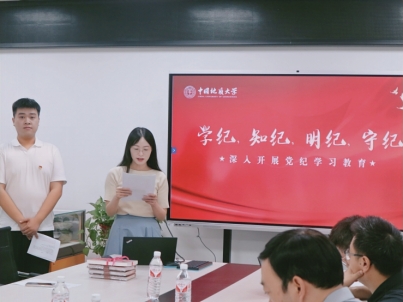 汪再奇书记强调,中国共产党是靠铁的纪律组织起来的马克思主义政党,纪律严明是我们党百年奋斗的独特优势和宝贵经验,开展党纪学习教育是锻造一支同人民群众保持血肉联系的马克思主义政党的重要手段,是加强党的执政能力、推进全面从严治党的现实需要,学党纪、讲政治、明纪律也是一名合格共产党员的应有品质。他对师生党员提出了两点希望:一是党纪学习要原原本本、逐章逐条学习《中国共产党纪律处分条例》,联系党章、党的二十大精神和清廉地大建设要求开展系统学习,在学习过程中要能沉下心,做到学有所感、学有所得;二是要将党纪学习融入思政课教学,融入日常学习工作生活中,要把遵规守纪时刻铭刻于心,让党纪学习教育真正“春风化雨”“入脑入心”。