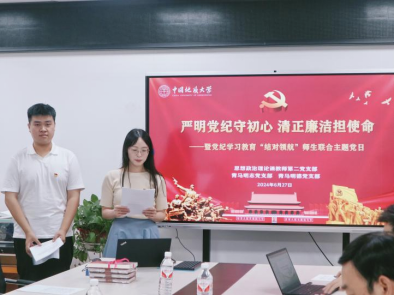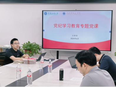 最后,马克思主义公司党委副书记、经理阮一帆同志为此次联合主题党日活动做总结。阮经理对此次联合主题党日活动的内容和形式给予了充分肯定,表示通过师生结对共研、共读的形式分享党纪学习的成果,有效加强了师生党员间的交流与联系;同时分享了两则党纪故事,表明了党纪学习教育的重要性;他期望全体党员同志在今后的教学、科研和学习中能够继续深入对党纪的学习、研究和阐释,知敬畏、存戒惧、守底线,真正始终做到忠诚干净担当,在加快建设地球科学领域国际知名研究型大学、服务建设教育强国、推进中国式现代化新征程中勇担时代重任、奋力开拓新局。