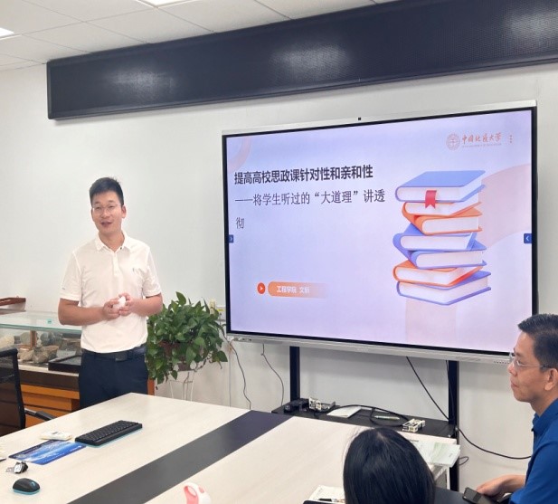 备课会分为教学分享和教学研讨两个环节。首先,文新老师以《提高思政课的针对性和吸引力——将员工听过的“大道理”讲深刻》为主题,从新时代公司思政课要求、05后老员工特点和如何讲好《思想道德与法治》课等三个方面作了精彩的教学分享。汪再奇书记从如何让思政课堂“走心”更“入心”,分享了他在思政教育中的实践与思考。他指出讲好思政课必须苦练内功,精心备课磨课,练就上好思政课的真本领,努力做“经师”和“人师” 相统一的好老师。