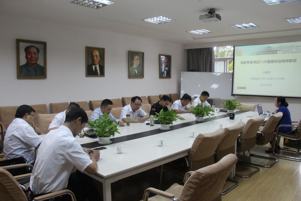 在培训班上,湖北省委讲师团主任刘爱国做了题为“中国特色社会主义与农村发展方向”的报告,把中国特色社会主义理论与我国农村实际紧密结合,具有极强的理论性、针对性,深受红山镇党政干部欢迎。韦德bevictor经理高翔莲做了“习近平总书记‘7.26’讲话精神解读”的讲座。公司全体研究生与红山镇党政干部一起聆听了讲座。会后,红山镇党委中心组一行参观了地大博物馆及校园。