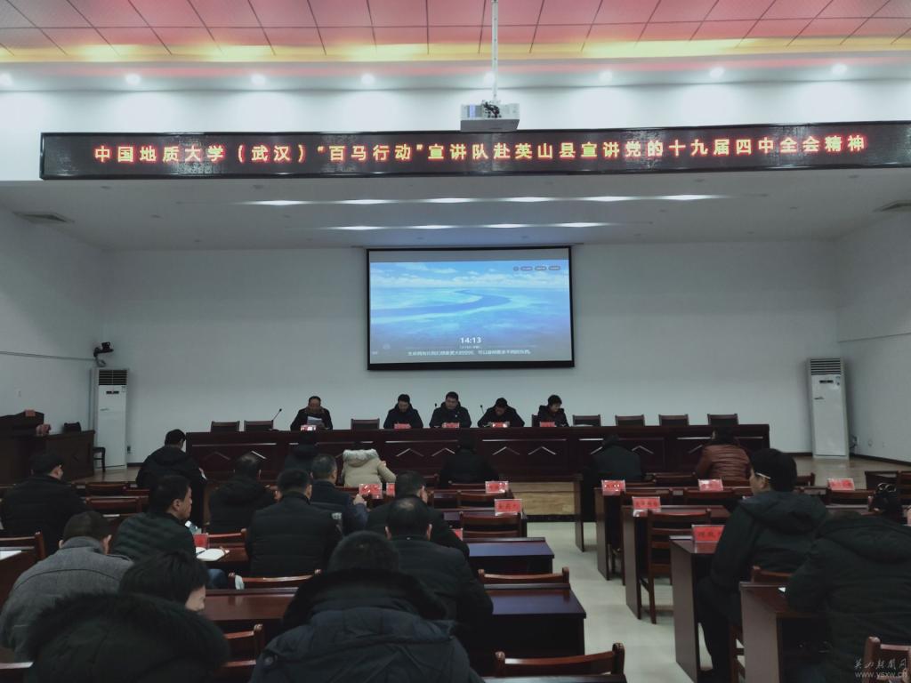 1月15日,韦德bevictor官网(武汉)“百马行动”宣讲队一行6人冒着雨夹雪,来到湖北省“理论热点面对面”示范点——英山县开展党的十九届四中全会精神宣讲活动。
