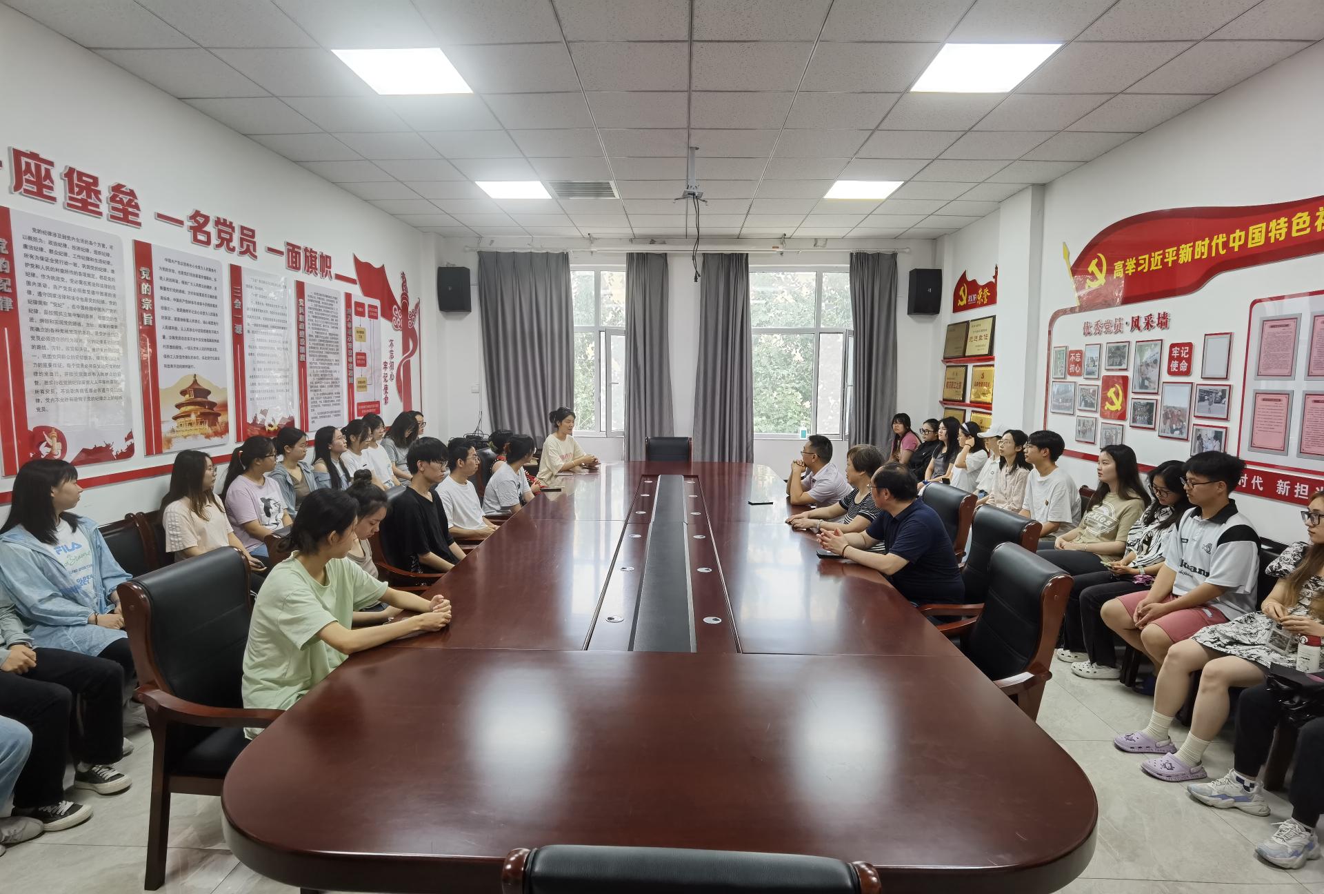 7月31日,汪再奇在临猗县委党校与相关负责人进行交流,感谢他们为公司师生提供良好的实习住宿条件,并期望进一步加强合作。