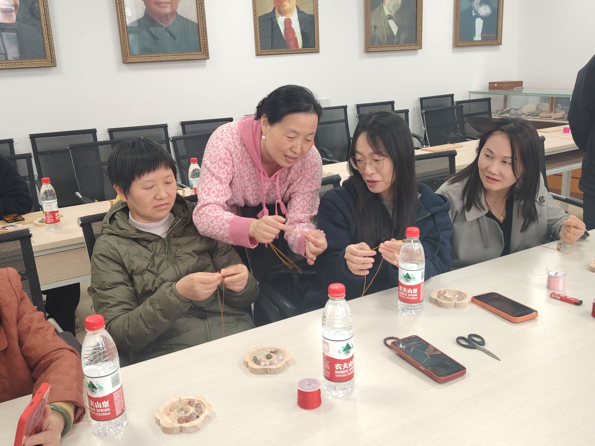 活动特邀主讲老师普及宝石鉴赏知识,让大家从专业视角重新审视身边的地质瑰宝。在手作体验环节,女教师们亲手挑选原石、搭配色彩,在主讲老师指导下,学习并实践编绳技巧,在穿针引线中释放压力,也在切磋协作中增进了情谊。