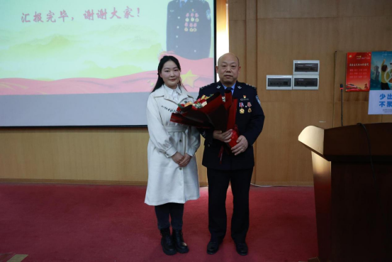 授课结束后,员工党员代表,青马明志党支部组织委员陈雅文同志向胡永鹏警官献花,向英模学习、致敬。